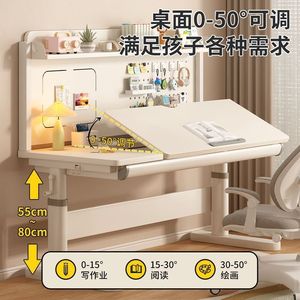 实木儿童学习桌小学生家用写字桌椅套装桌面角度可调节高度可升降