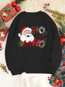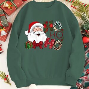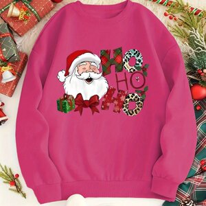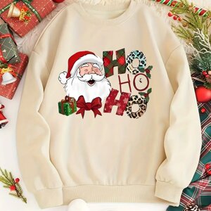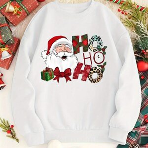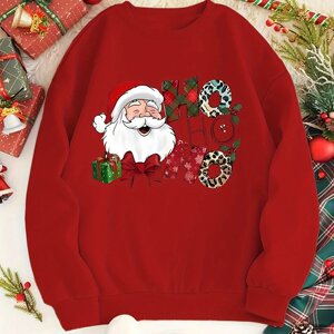 レディース クリスマス クルーネック スウェットシャツ フェスティバル グラフィック プリント ポリエステル ニット生地 カジュアル 4
