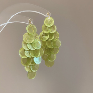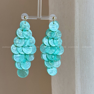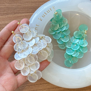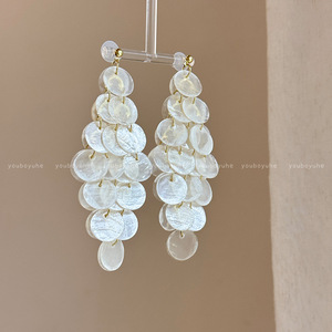 ミントグリーンの天然貝殻イヤリング、女性用、超妖精、美しい、ハイエンド、気質イヤリング、ニッチなロングタッセルイヤリング
