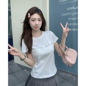 【210克40支纯棉】夏季显瘦百搭上衣超好看蝴蝶结花边镂空短袖t恤