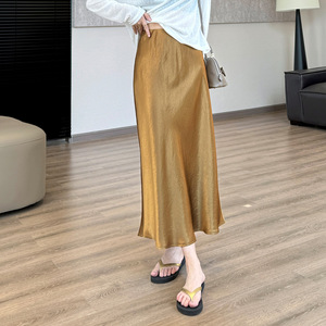 伊士曼鎏光醋酸裙 微皱肌理缎光斜裁半身裙H型长裙25夏新