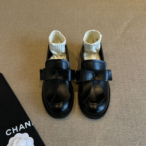 ソフトレザーバージョン〜ラウンドトゥリボン英国風ローファー、レトロカレッジシューズ、女性用ローヒールスモールレザーシューズ