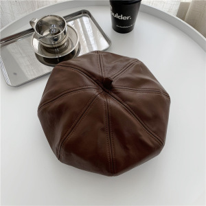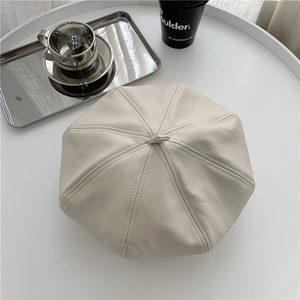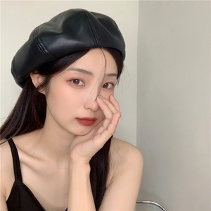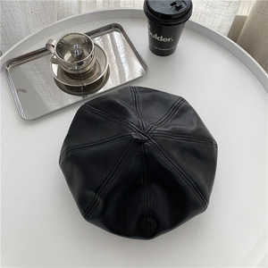 深得痞女心~pu皮质纯色拽酷街拍网红同款贝雷帽女复古气质南瓜帽