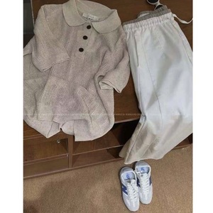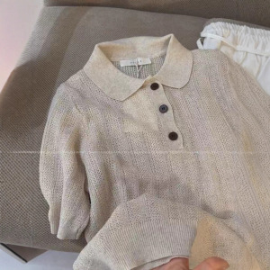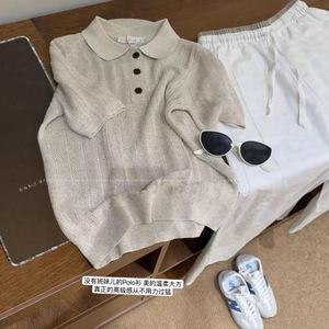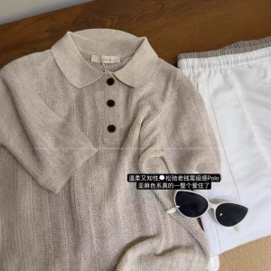 ounce 燕麦芝士 亚麻和子纱 高级感老钱风Polo领针织衫正肩短袖女