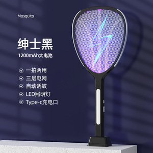 新款跨境充电式光触媒电击灭蚊灯家用诱驱蚊器捕蚊灯二合一电蚊拍