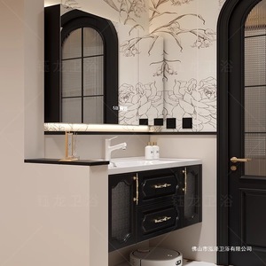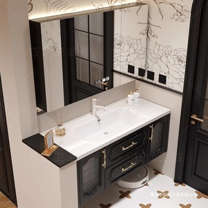 フレンチレトロなバスルームキャビネットコンビネーションセラミック一体型洗面台バスルーム洗面台ロックボードホットベンド洗面台