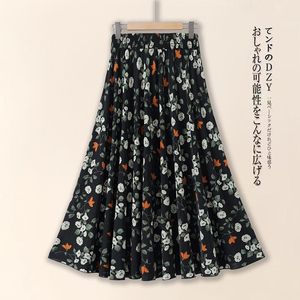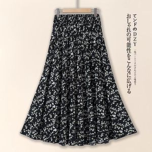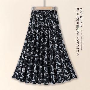 女性のスカート夏のレトロなアイスシルクプリントママスカートは肉をカバーし、スリムに見え、ファッショナブルなハイウエストロングスカート