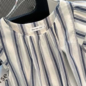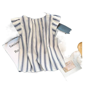 条纹衬衫女小飞袖夏季新款简约设计复古衬衣减龄休闲遮肚上衣小衫