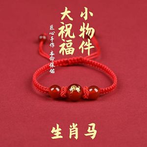 2024年辰年干支赤いロープブレスレット男性と女性用、辰年編み込み赤いロープドラゴンビーズ瑪瑙ブレスレット