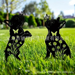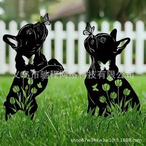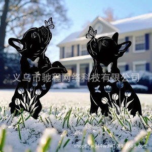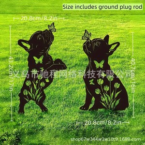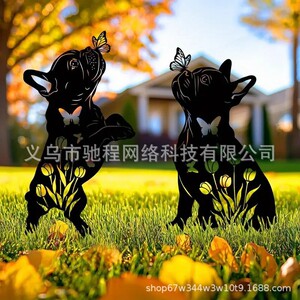 2 個屋外金属犬庭の装飾フレンチ ブルドッグ金属黒シルエット装飾庭の杭