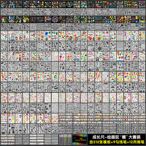 成长尺-绘画狂"模"大合集 含212张画画模板+勾线笔+涂