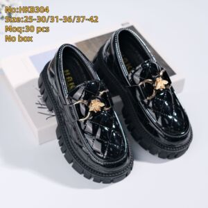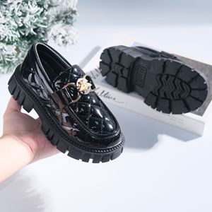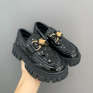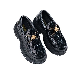 外国貿易子供靴クロスボーダー大小サイズ光沢のある英国スタイルの厚底ローファー2025春新作スカート付きブラック