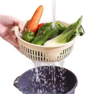 二層野菜洗い桶、プラスチック排水バスケット、米洗い器、野菜青、野菜洗い桶、家庭用キッチン果物洗い桶