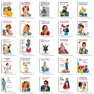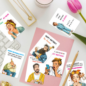 国境を越えた新しい 50 枚の誕生日テキストカード、漫画の誕生日プレゼントのメッセージカードとグリーティングカードの組み合わせ卸売