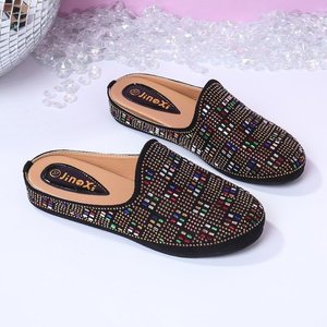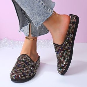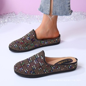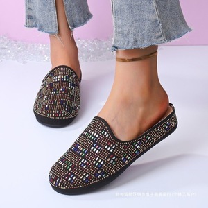 外贸大码半拖鞋水钻鞋条形水钻压钻舒适低跟女鞋