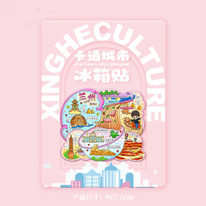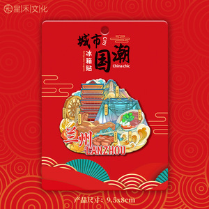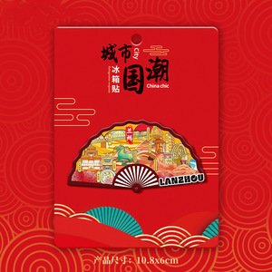 甘肃兰州黄河风情线中山桥白塔山地标热门景点木质文创旅行冰箱贴