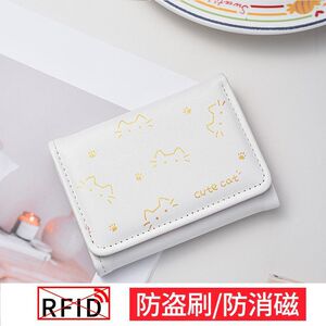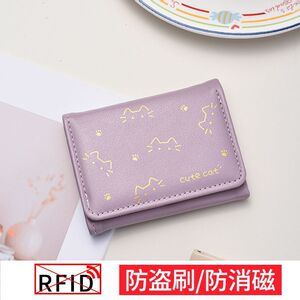新しいショート折りたたみ小さな財布女性のニッチデザインかわいいプリント猫ミニ財布コインカードホルダー薄型