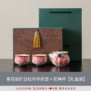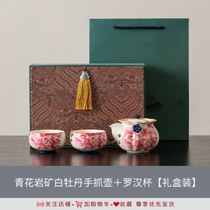 青花岩矿白牡丹手抓壶+福禄杯【礼盒装】