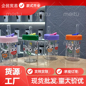 高ホウケイ酸ガラスガールズパールミルクティーストローカップホームクリエイティブカップ耐熱カップ新しいジュースカップ