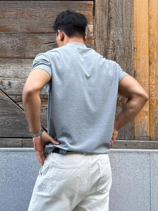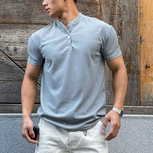 健身短袖男士夏季简约纯色中式POLO衫亨利领运动透气收袖口短袖潮