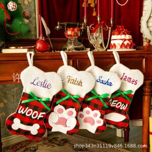 2025跨境个性化刺绣圣诞骨头宠物袜猫狗礼物袋挂件装饰品圣诞挂饰