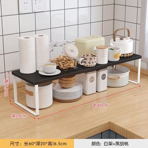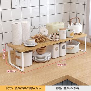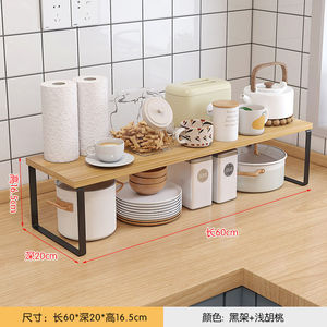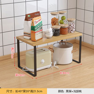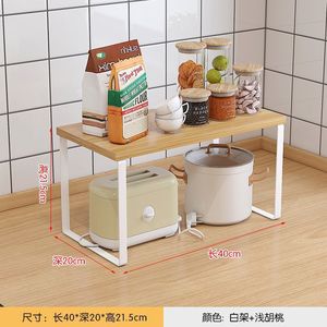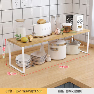 キッチンカウンタートップ収納ラックデスクトップポットキャビネット層状パーティションボウルとディッシュ収納ラック二層木製