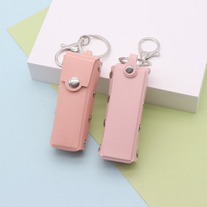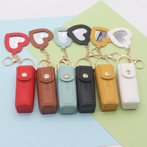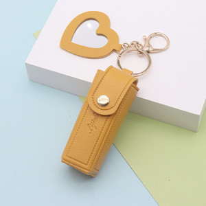 便携唇膏口红包新款礼品皮质零钱包钥匙扣挂件女生爱心迷你化妆镜