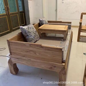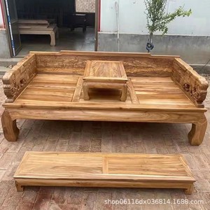 古いニレ羅漢ベッド無垢材新しい中国家具寝台多機能B&Bリビングルームソファベッドロングソファベッド