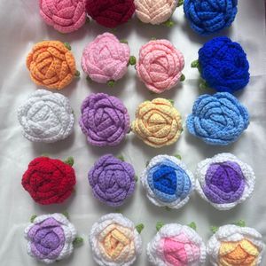手工钩针编织毛线玫瑰花头半成品仿真花家居装饰diy辅料配件批发