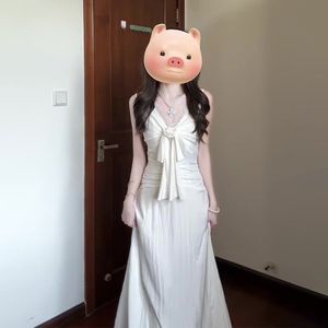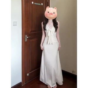 纯欲温柔V领法式无袖连衣裙女夏白色修身a字长裙设计感小众裙子