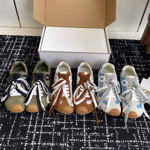 Ding~25 新しいカラーブロックシープスキンストラップレトロレースアップカジュアルスポーツホワイトシューズ女性の道徳訓練フォレストシューズ