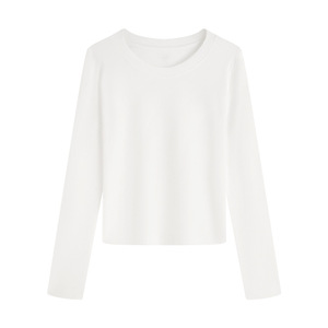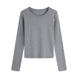 秋季新款气质通勤长袖T恤女休闲圆领上衣宽松显瘦纯色内搭打底衫