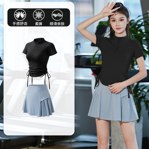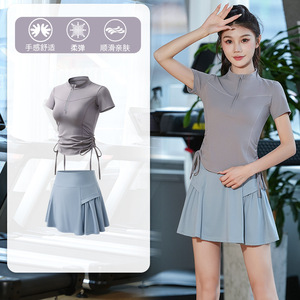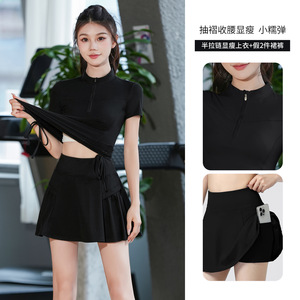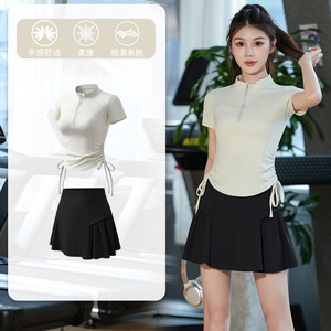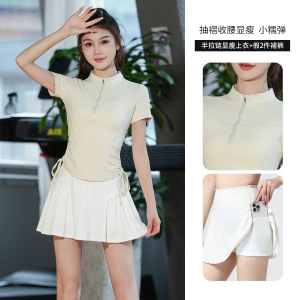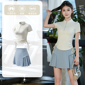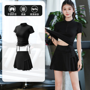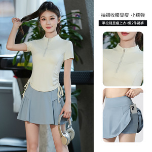 半拉链健身服女晨跑夏季款速干跑步跳操训练服专业透气瑜伽服套装