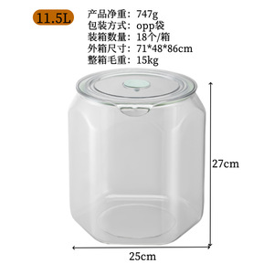 11.5L六角平蓋密閉瓶(18個/カートン、外箱サイズ71×48×86cm)
