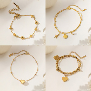 【XKA5065】爱心双层链 脚链 金色
