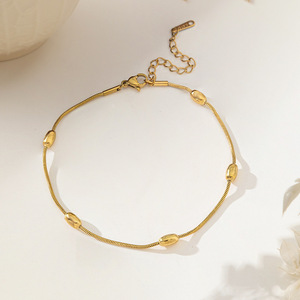 【XKA0029】椭圆夹珠链脚链金色