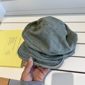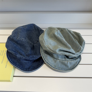 日系文艺水洗牛仔小众设计贝雷帽女百搭显脸小遮阳防晒八角帽子潮