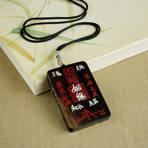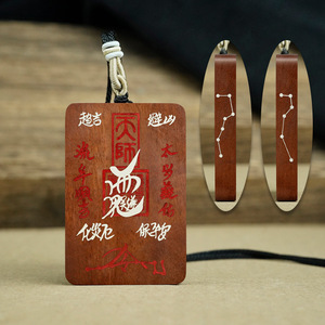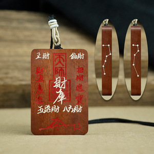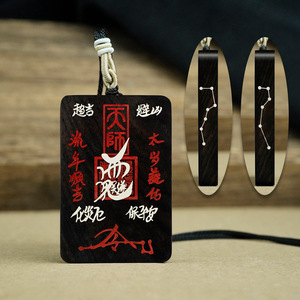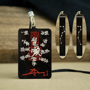 棗木に銀を象嵌した文昌魁星朱砂ペンダント、黒檀に象嵌された財庫民俗コレクション、道教の装飾品、カスタムメイド