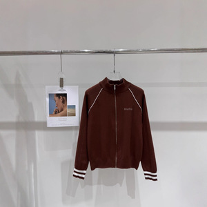 ミュウズ 2025 Nanyou ハイエンドブティックレディースニットカーディガンジッパージャケット刺繍文字カラーブロックライン