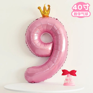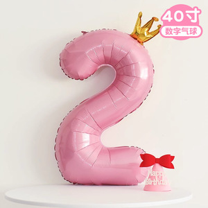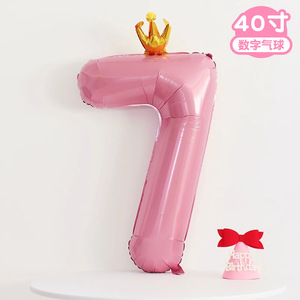 40寸玫红公主生日快乐+2个皇冠数字气球