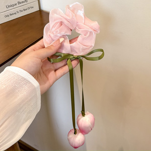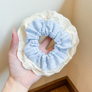 韩系春夏蝴蝶结大肠发圈女款蕾丝碎花头绳粉色方巾大号发饰