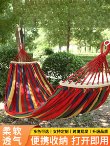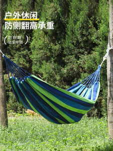 屋外ハンモック屋外白肥厚キャンバス曲げロッドシングルとダブルメーカークロスボーダー卸売スイングハンモック横転防止