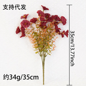 屋外秋模擬造花 7 ヘッドユーカリ朝顔庭装飾模擬花ユーカリの葉植物