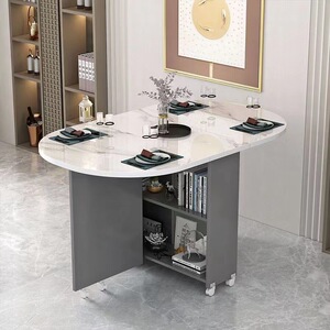 (加厚板)长120宽60高77【灰+仿白大理石】椭圆形(已升级白轮)