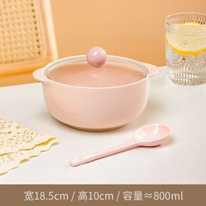 带盖勺陶瓷双耳防烫泡面碗奶油少女纯色可爱健康釉下彩大容量优选