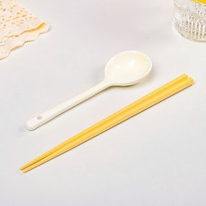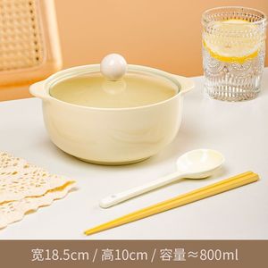 【四件套】奶油色/双耳泡面碗+玻璃盖+勺+筷