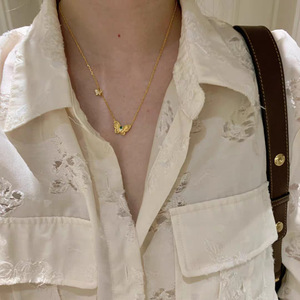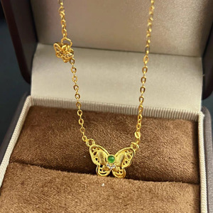 复古意大利金色拉丝中古镂空蝴蝶项链绿钻小众高级感轻奢锁骨链