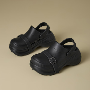 女性が外で履くための新しい包頭スリッパ、EVA厚底スリッポン、夏用耐摩耗性、滑り止め、ハイエンドバックル付きビーチスリッパ