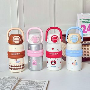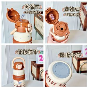 女の子用のポータブル子供用魔法瓶カップ、見栄えの良い漫画のかわいいケトル、ポータブル学生ダブルドリンクステンレススチールウォーターカップ