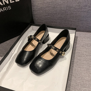 厚いヒール、ミディアムヒール、優しく香りのよいメリージェーンシューズ、女性用2025秋新作レトロソフトレザーフェアリーオールマッチシューズ